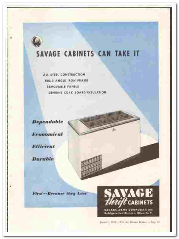 Manufacturers of Savage Thrift Cabinets for Ice Cream. 'Savage Cabinets Can Take It!'.