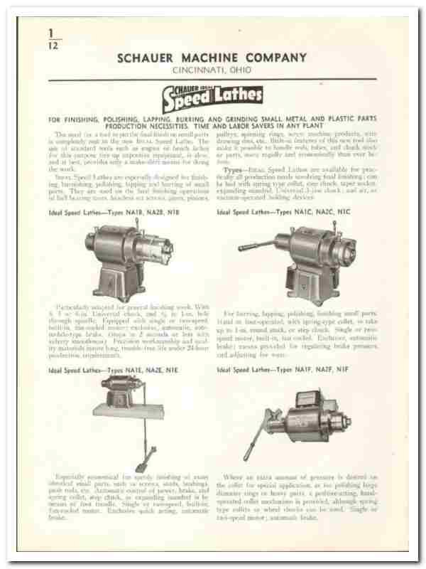 Schauer Machine Company 1941 vintage industrial catalog speed lathes