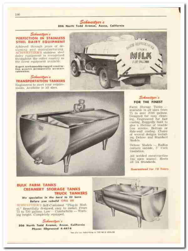 Original dairy trade vintage catalog for SCHWEITZER'S, INC. Main office and plant was located at 806 North Todd Avenue, Azusa, CA.