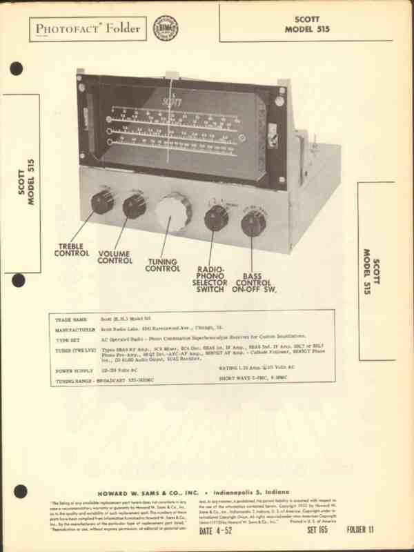 scott model 515 3 band receiver radio phono sams photofact manual