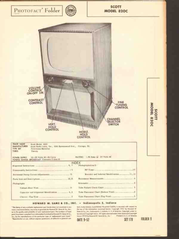 scott model 820c 20 tube tv television receiver sams photofact manual
