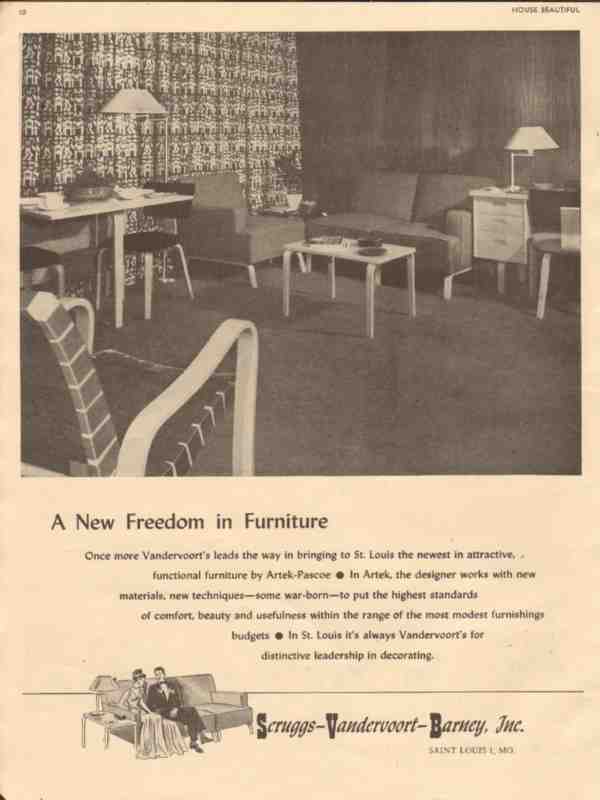scruggs-vandervoort-barney inc 1946 artek-pascoe furniture vintage ad