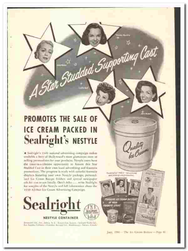Sealright Company 1949 vintage ice cream ad Nestyle Star Studded Cast