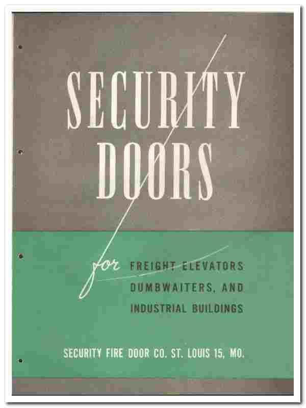 Security Fire Door Company 1946 vintage catalog freight elevators