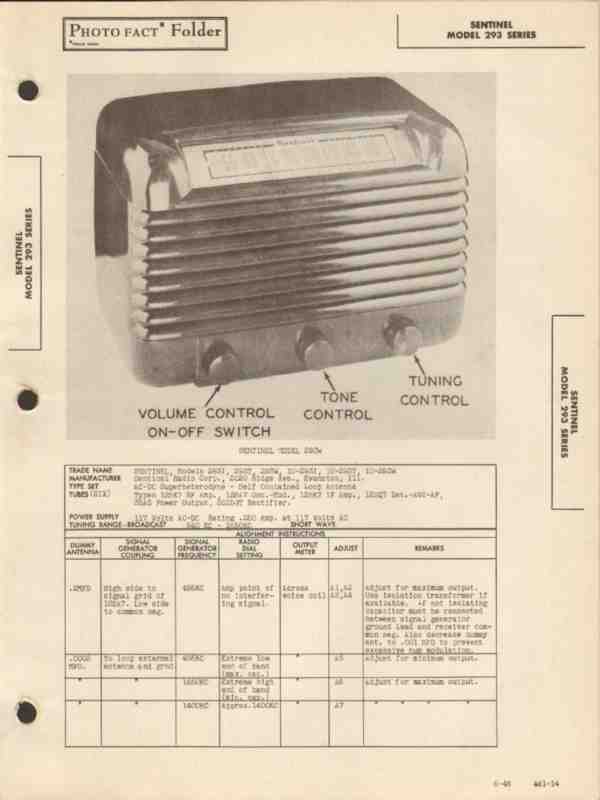 sentinel model 293x series am radio receiver sams photofact manual