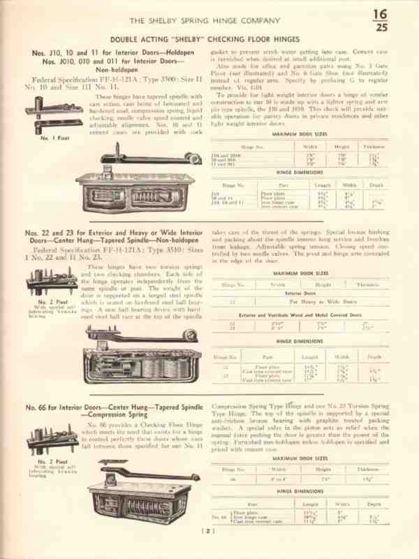 Shelby Spring Hinge Company 1938 Vintage Catalog Hardware Check Floor