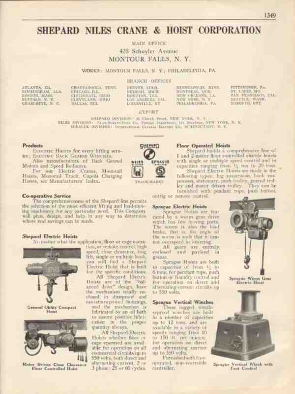 Shepard Niles Crane Hoist Corp 1941 vintage industrial catalog winches