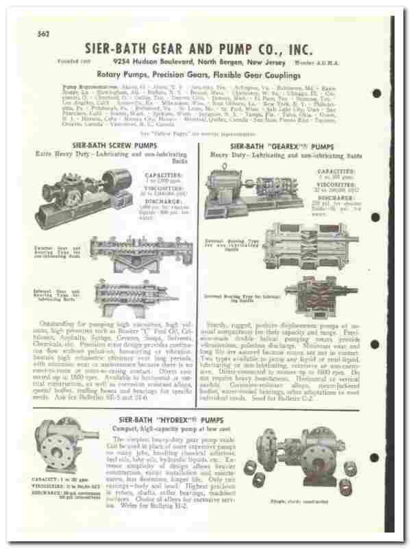 Original 1960 industrial trade vintage catalog for the SIER-BATH GEAR & PUMP COMPANY, INC. Main office and plant were located at 9254 Hudson Boulevard, North Bergen, NJ.