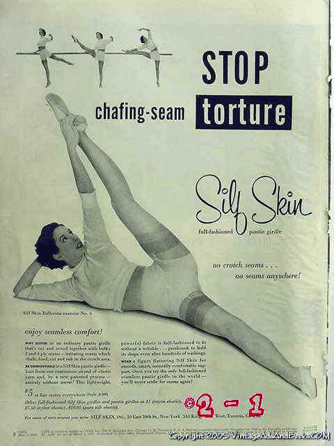 silf skin inc 1953 womans girdle stop chafing seam torture vintage ad