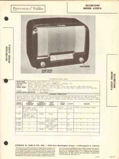 Vintage SILVERTONE model 6200A (Chassis 101.800-1) Superheterodyne 4 tube AM radio receiver. Original old Sams Photofact manual includes schematic, layout, alignment instructions, voltage & resistance test charts, repair parts list and description. Dated 1946. 4 pages. Sears, Roebuck & Company of Chicago, IL. This manual would make a sensational accompaniment to your classic retro radio equipment.