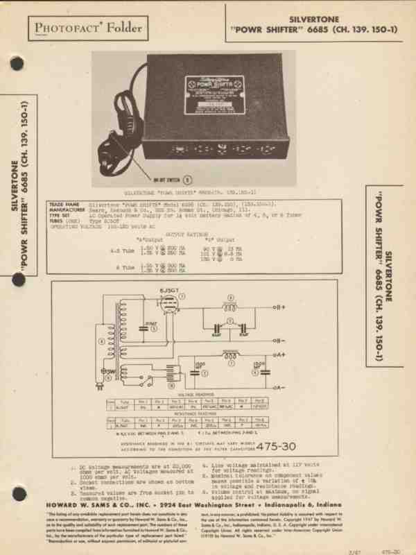 silvertone model 6685 powr shifter power supply sams photofact manual