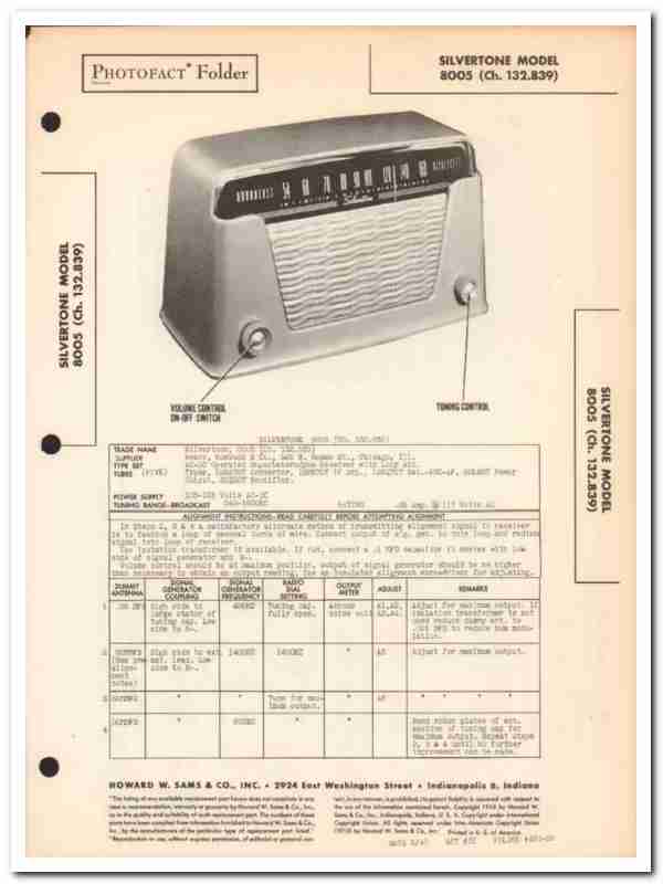 silvertone model 8005 5-tube am radio receiver sams photofact manual