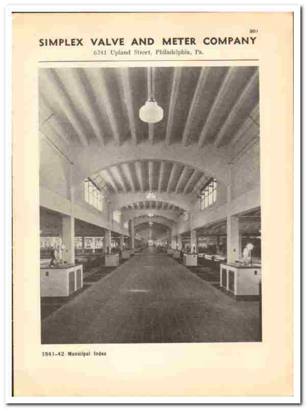 Original 1941 municipal trade vintage catalog for the SIMPLEX VALVE & METER COMPANY. Main office and plant were located at 6741 Upland Street, Philadelphia, PA.