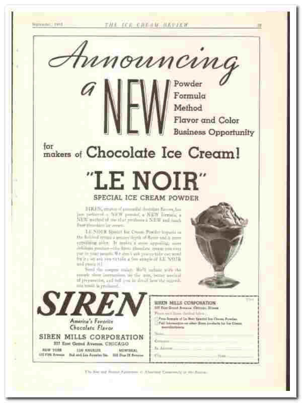 Siren Mills Corp 1933 vintage ice cream ad Le Noir chocolate flavor