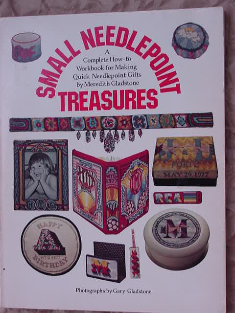 Soft covered book titled SMALL NEEDLEPOINT TREASURES by Meredith Gladstone, Photographs by Gary Gladstone, 128 pages, 1979, First Edition.