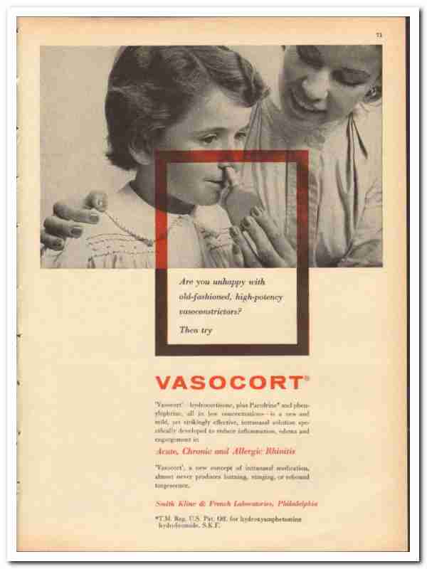 Smith Kline French Laboratories 1959 vintage medical ad Vasocort