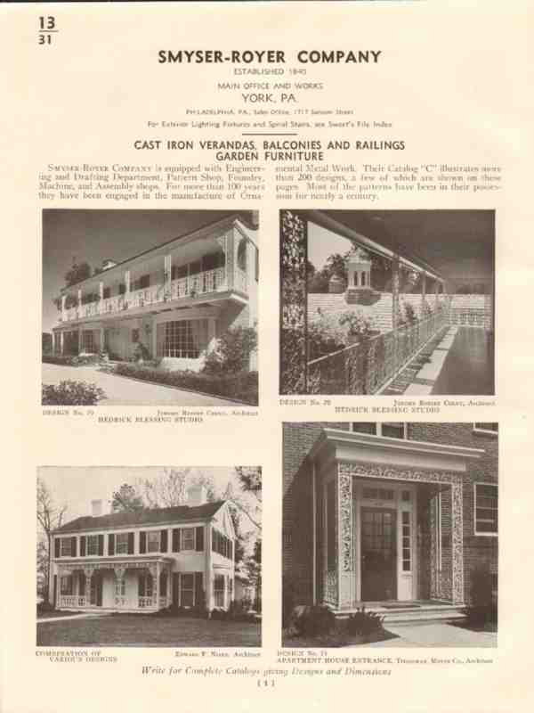 Smyser-Royer Company 1940 Vintage Catalog Cast Iron Verandas Railings