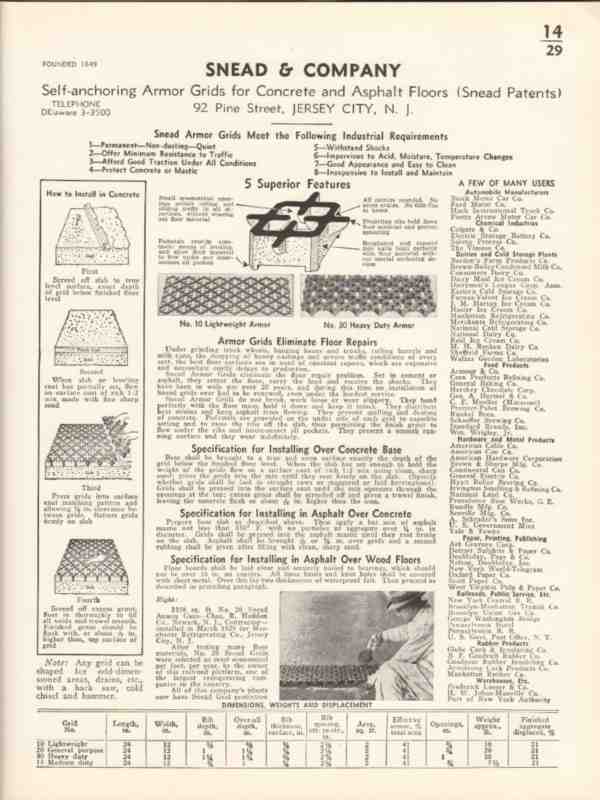 Snead Company 1939 vintage flooring catalog concrete Armor Grids
