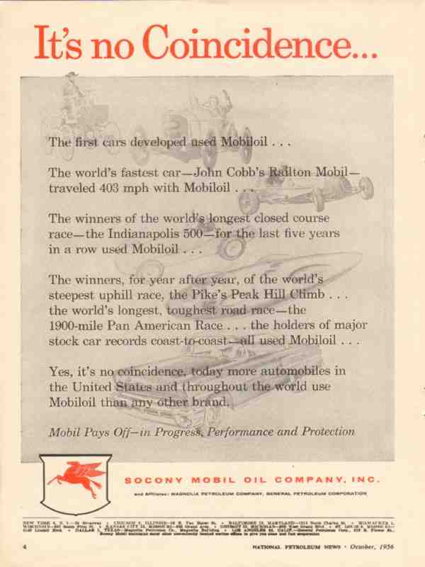 Socony Mobil Oil Company 1956 Vintage Ad Mobiloil Coincidence First