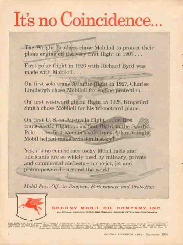 socony mobil oil company 1956 coincidence wright brothers vintage ad