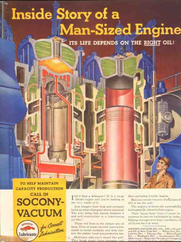 Socony Vacuum Oil Company 1943 Vintage Ad Inside Story Man-Size Engine