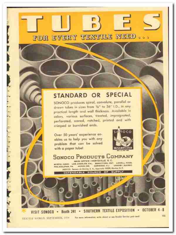Sonoco Products Company 1954 vintage textile ad paper tubes spiral