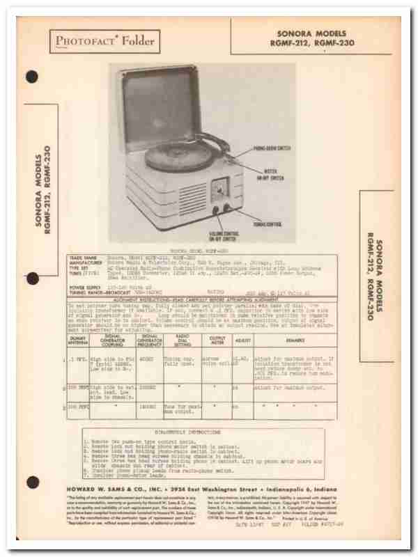 sonora model rgmf-212 rgmf-230 am radio phono sams photofact manual