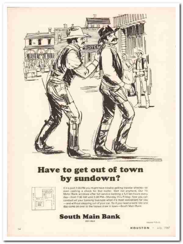 south main bank 1967 get-out-of-town sundown financial vintage ad