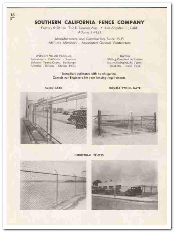 Original 1948 fence trade vintage catalog for the SOUTHERN CALIFORNIA FENCE COMPANY. Main office and factory was located at 712 East Slauson Avenue, Los Angeles, CA.