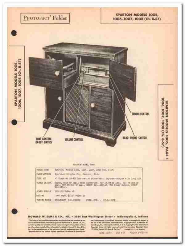 sparton model 1005 1006 1007 1008 am fm phono sams photofact manual