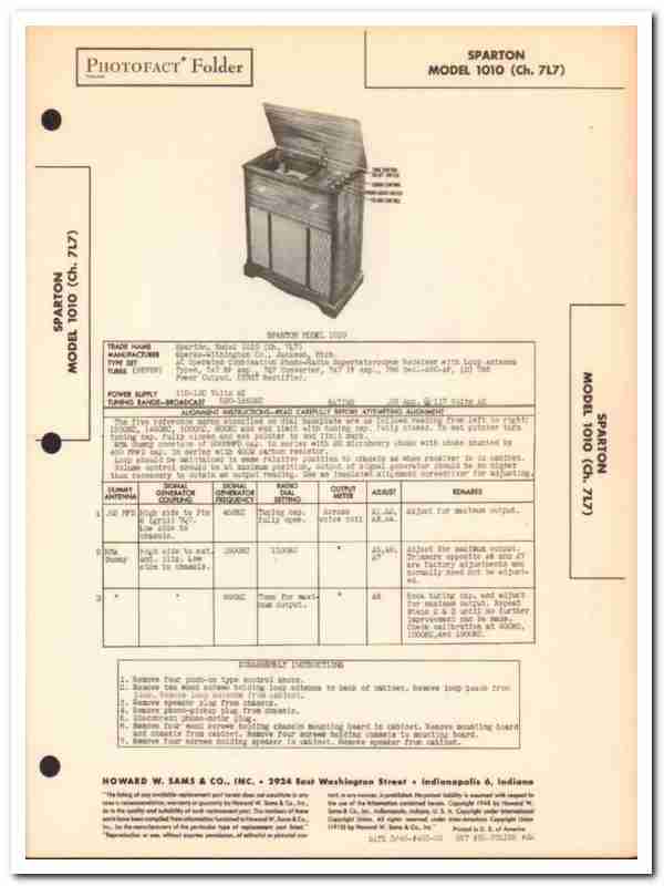 sparton model 1010 7-tube am radio phonograph sams photofact manual
