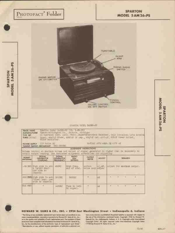 sparton model 5am26-ps am radio phonograph sams photofact manual