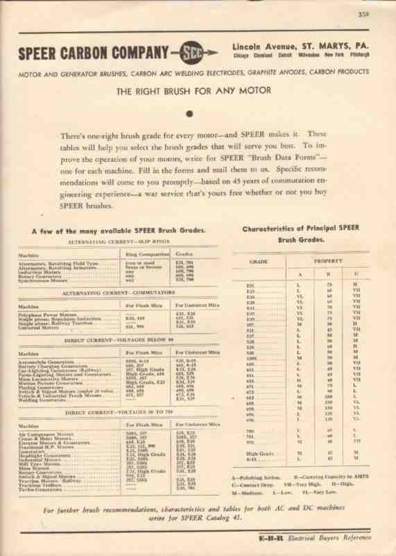 Speer Carbon Company 1944 Vintage Catalog Motor Generator Brushes