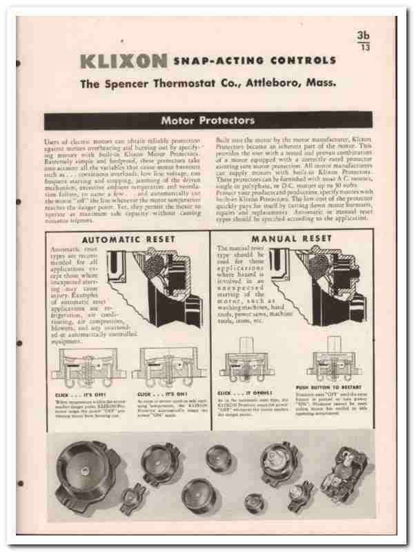 Spenser Thermostat Company 1946 vintage electrical catalog Klixon
