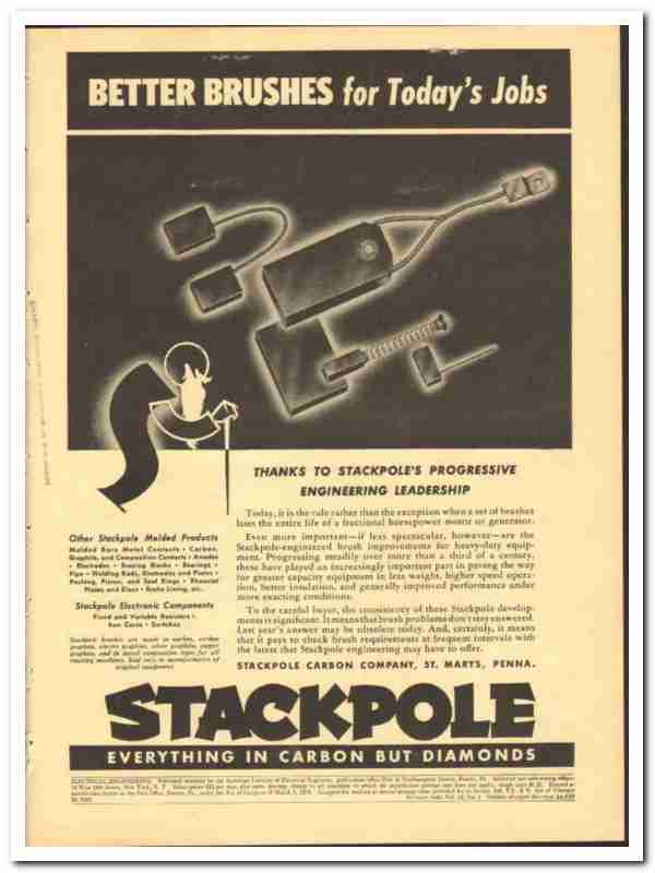 Stackpole Carbon Company 1943 vintage electrical ad brush problems