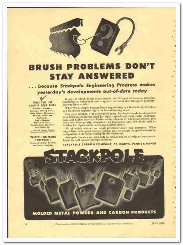 Stackpole Carbon Company 1943 vintage electrical ad brush problems