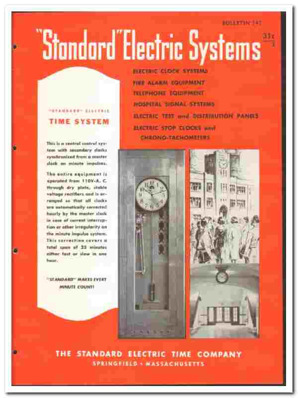 Original 1946 electrical trade vintage catalog for the STANDARD ELECTRIC TIME COMPANY. Main office and plant were located in Springfield, MA.