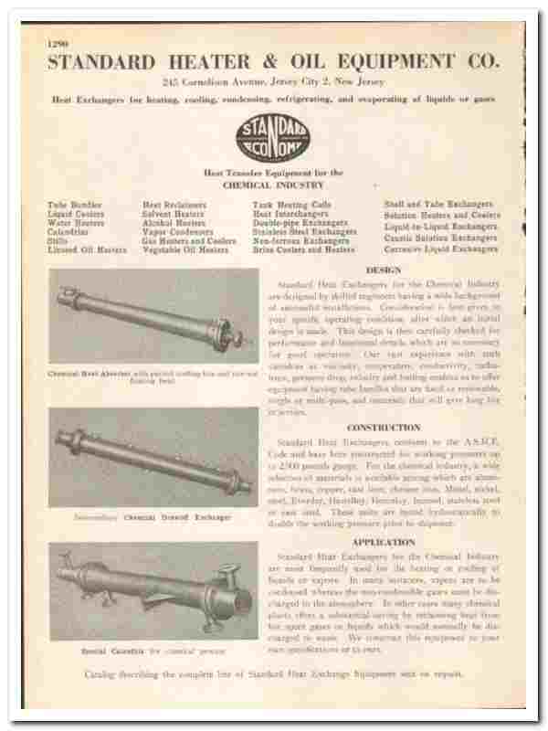 Original 1945 industrial heater trade vintage catalog for the STANDARD HEATER & OIL EQUIPMENT COMPANY. Main office and plant were located at 245 Cornelison Avenue, Jersey City, NJ.