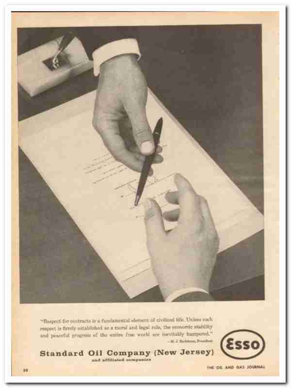 Standard Oil Company 1959 Vintage Ad MJ Rathbone Esso Respect Contract