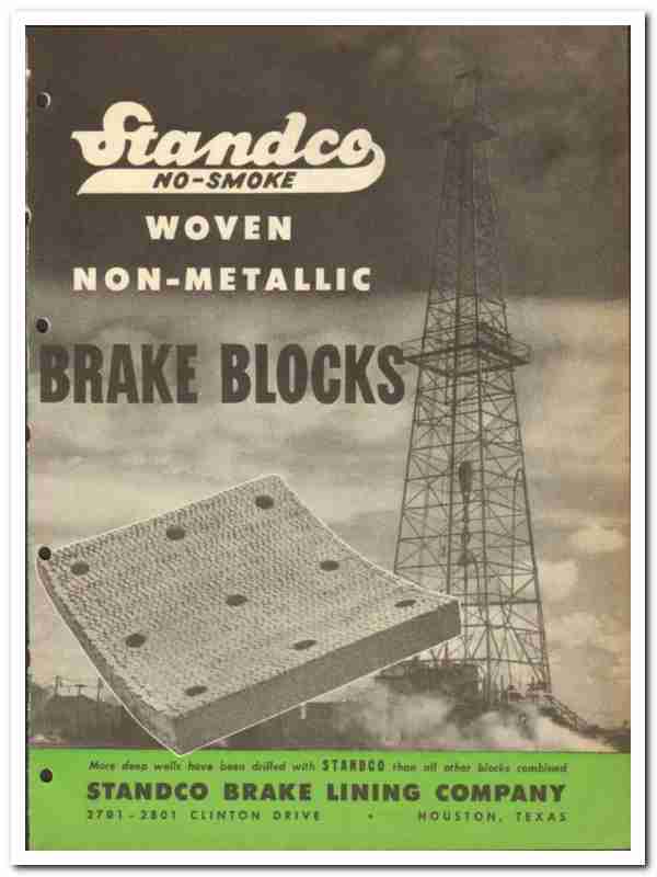 Original 1951 Oil and Gas trade vintage catalog for the STANDCO BRAKE LINING COMPANY. Main office and plant was located at 2701-2801 Clinton Drive, Houston, TX.