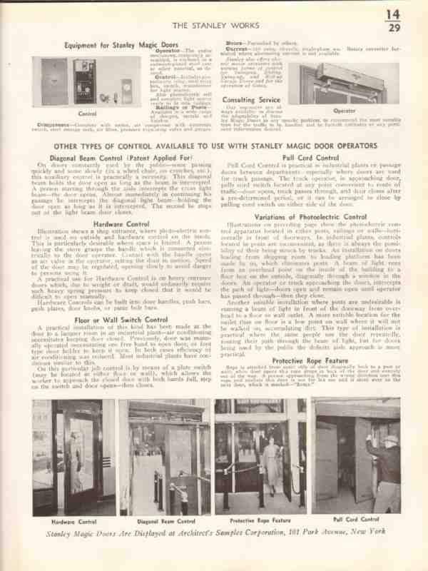Stanley Works 1961 vintage hardware catalog Magic-Door operating