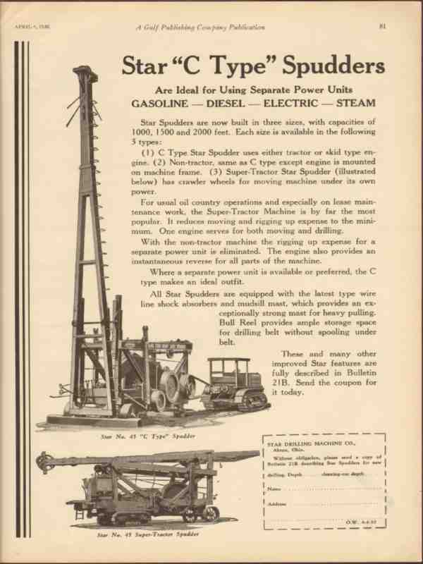 Star Drilling Machine Company 1930 Vintage Ad Oil Field C Type Spudder