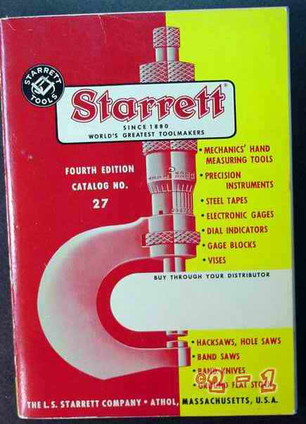 Soft covered book titled L. S. STARRETT TOOLS Catalog No. 27,Fourth Edition, 1965, 544 pages. The L.S. Starrett Company of Athol, Massachusetts.