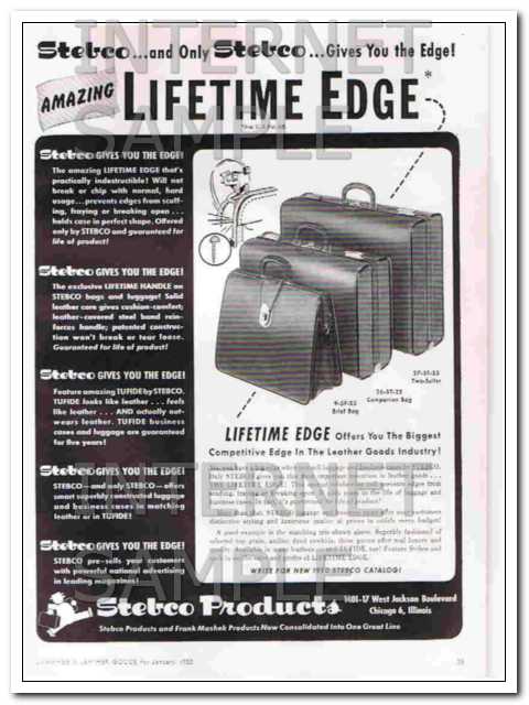 Stebco Products Inc 1950 Vintage Ad Luggage Lifetime Edge Leather