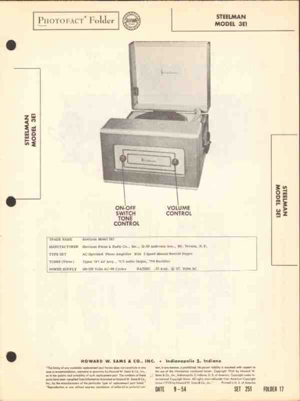 steelman model 3e1 record player audio amplifier sams photofact manual