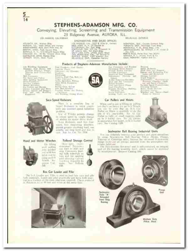Original 1941 industrial trade vintage catalog for the STEPHENS-ADAMSON MANUFACTURING COMPANY. Main office and plant was located at 23 Ridgeway Avenue, Aurora, IL.