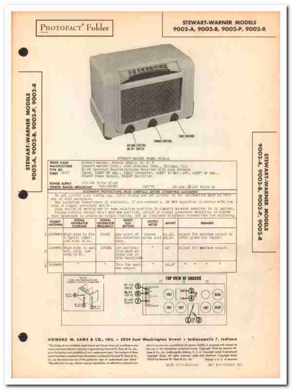 stewart-warner model 9002-x 6-tube am radio sams photofact manual