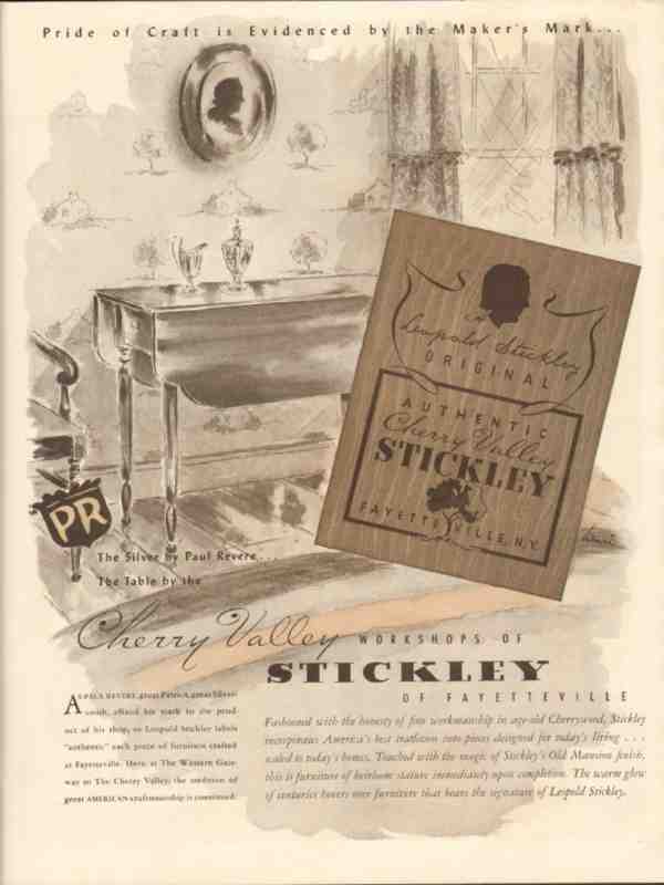 stickley 1946 pride craft cherry valley workshop furniture vintage ad
