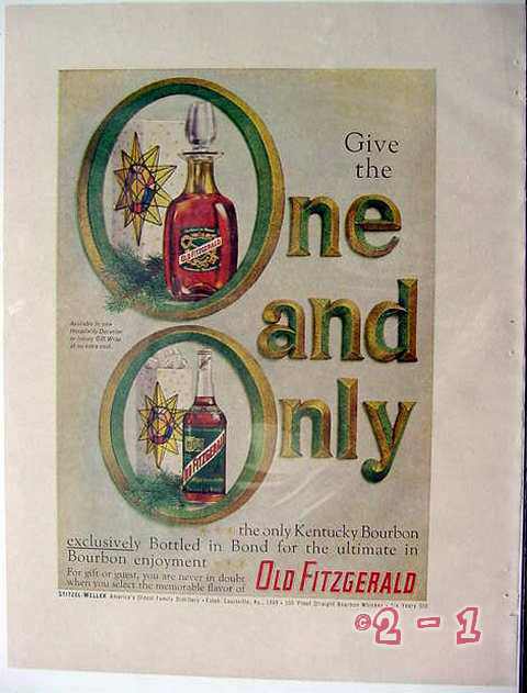 Original vintage magazine ad, STITZEL WELLER DISTILLERY, of Louisville, KY. Give the One and Only. Old Fitzgerald whiskey Christmas advertisement.