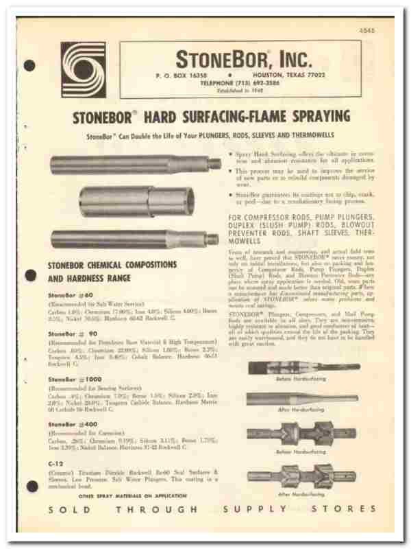 StoneBor Inc 1970 vintage oil catalog oilfield hard surfacing spraying